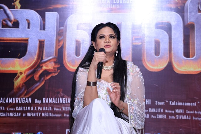 90களில் தமிழ் சினிமாவில் விஜயசாந்தி மேடம் ஆக்ஷன் படங்களில் நடித்திருக்கிறார். ஆனால் இந்த படத்தில் முதன் முறையாக ஒரு முழுநீள ஆக்ஷன் ஹீரோயினாக நான் நடித்திருக்கிறேன். நாயகர்களே நடிக்க தயங்கும் காட்சிகளிலும் டூப் போடாமல் ரிஸ்க் எடுத்து நானே நடித்திருக்கிறேன். ஆக்ஷன் காட்சிகளில் எல்லாமே ரொம்பவே கஷ்டப்பட்டு நடித்திருக்கிறேன்.