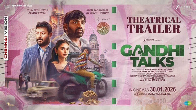2026 ஜனவரி 30 அன்று “காந்தி டாக்ஸ்” திரைப்படம் உலகமெங்கும் திரையரங்குகளில் வெளியாகிறது.